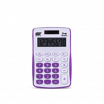 Calculadora Easy LYKE roxo/branco - Blister c/ 1un Calculadora Easy LYKE de bolso com 8 dígitos, na cor branca com roxo, teclas em plástico,... Marca: Lyke Orçar Orçar Calculadora Easy LYKE roxo/branco - Blister c/ 1un Calculadora Easy LYKE de bolso com 8 dígitos, na cor branca com roxo, teclas em plástico, função percentual e raiz quadrada. Ideal para ser usada no dia a dia. Tamanho: 113 x 71 x 16 mm.