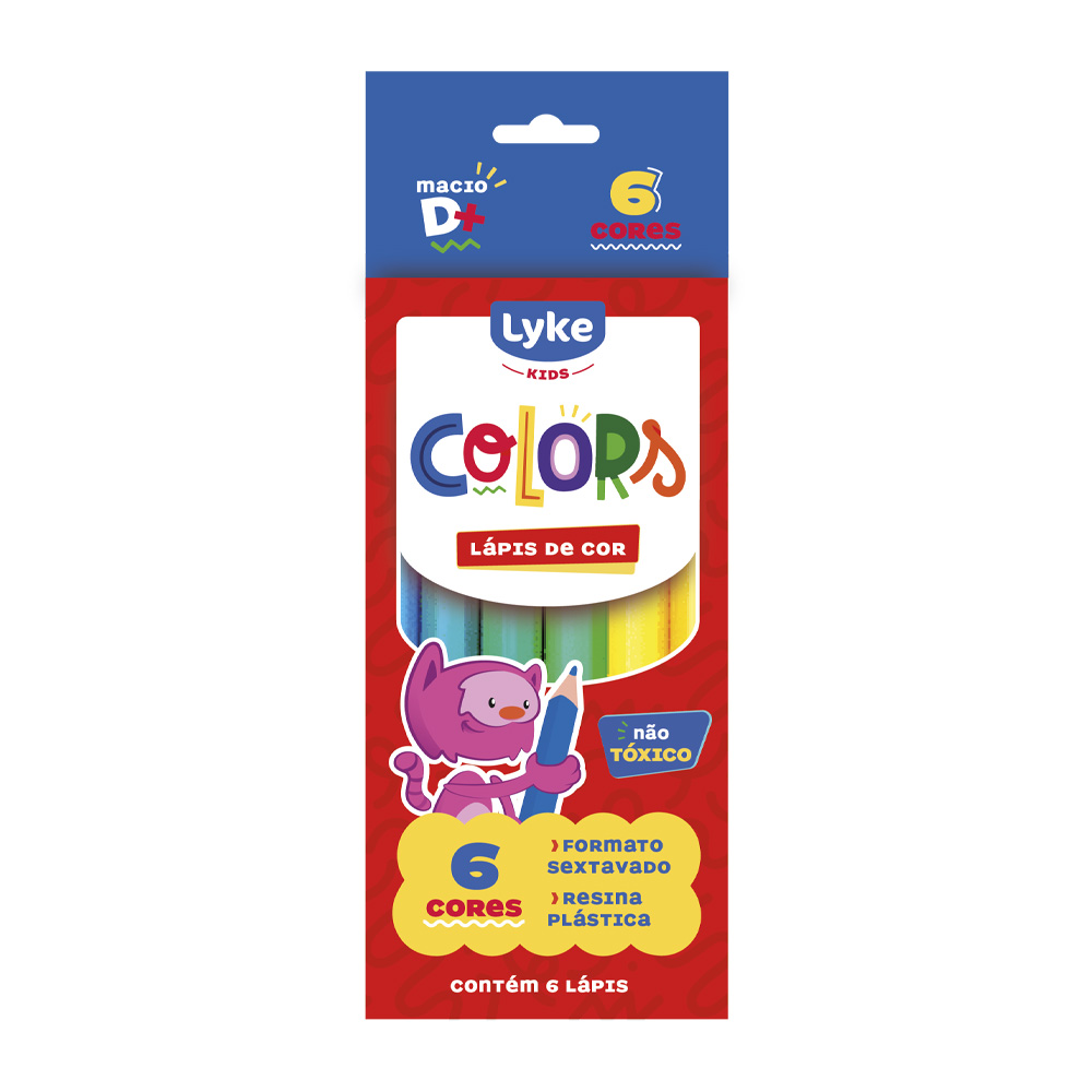 Lápis 06 cores curto de resina Plástica e formato sextavado.