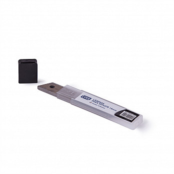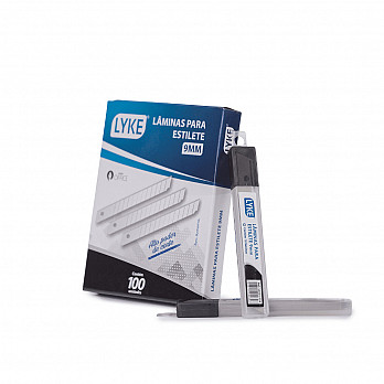 Lamina de Estilete Estreito 9 mm - cx c/ 100 unds Lâmina de estilete LYKE de 9 mm, é indicado para ser utilizado nos estiletes LYKE, mas também... Marca: Lyke Indisponível Lamina de Estilete Estreito 9 mm - cx c/ 100 unds Lâmina de estilete LYKE de 9 mm, é indicado para ser utilizado nos estiletes LYKE, mas também pode ser utilizado em estiletes similares. As lâminas são inseridas em um tubo resistente para garantir a segurança durante o transporte e manuseio.