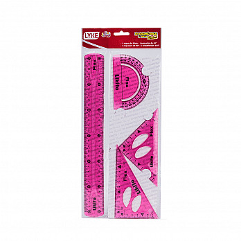 Kit Geométrico Flex LYKE - 03 peças (azul e rosa) O kit 3 peças contém: 1 Régua de 20 cm. 1 Esquadro de 60º. 1 Transferidor de 180º. Marca: Lyke Orçar Orçar Kit Geométrico Flex LYKE - 03 peças (azul e... O kit 3 peças contém: 1 Régua de 20 cm. 1 Esquadro de 60º. 1 Transferidor de 180º.