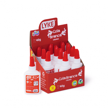 Cola Branca Liquida 40g cx c/ 12 unds Cola branca líquida LYKE 40g. Com tampa anti-ressecamento, bico dosador. Tem uma colagem limpa... Marca: Lyke Indisponível Cola Branca Liquida 40g cx c/ 12 unds Cola branca líquida LYKE 40g. Com tampa anti-ressecamento, bico dosador. Tem uma colagem limpa e rápida, e é ideal para colar papéis, cartolinas, fotos, PVA e similares, sem desperdício.